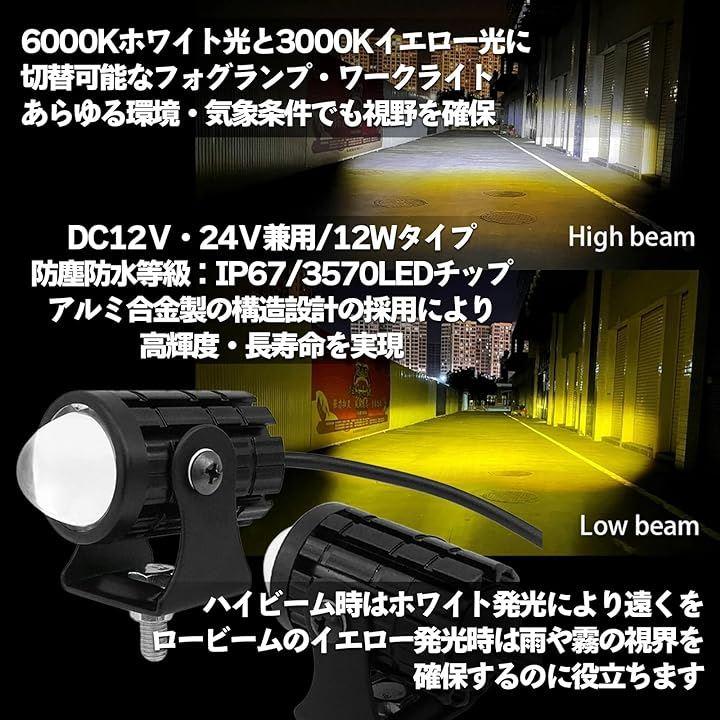 ・6000Kホワイト光と3000Kイエロー光に切替可能なフォグランプ・ワークライトとなります。