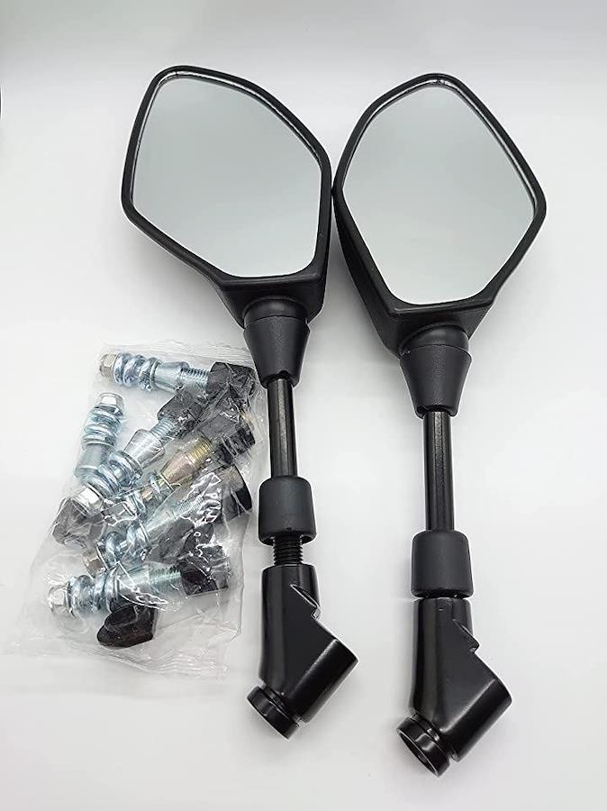 ・「セット内容」LR 1セット:ミラー本体(左右セット)、10mmネジx3(正ネジ2個、逆ネジ1個)、8mmネジx3 (正ネジ2個、逆ネジ1個)、防水キャップ2個、ねじピッチ1.25