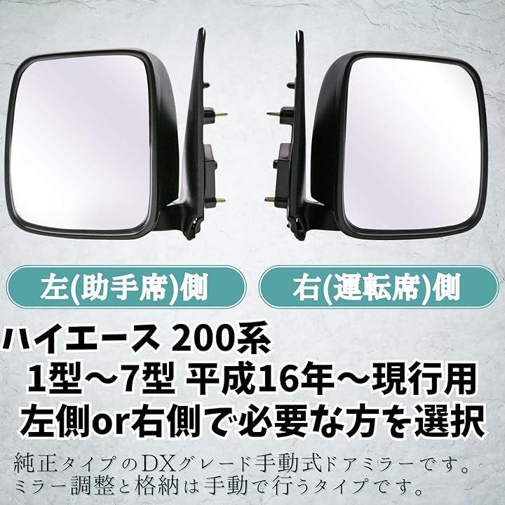 「商品概要」RiNanの純正タイプDXグレード手動式ドアミラーは、ハイエースとレジアスエースにピッタリとフィットするよう設計されています。