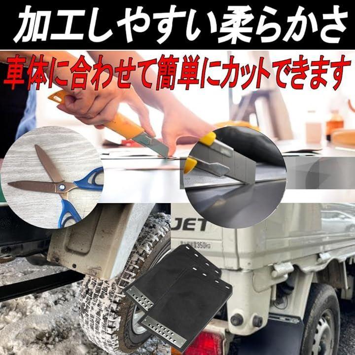 「車の泥よけ対策にマッドフラップ」車のタイヤの後ろ側に取り付けて 、走行の際に跳ね上げた小石や泥で、車体が汚れたり傷ついたりしないようにガードすることができる汎用タイプのマッドガードセットとなっております。