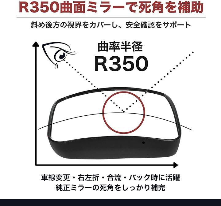 「優れた視界拡大」サイドミラーの外径は約220mmX約220mmで、曲率半径は約R350です。