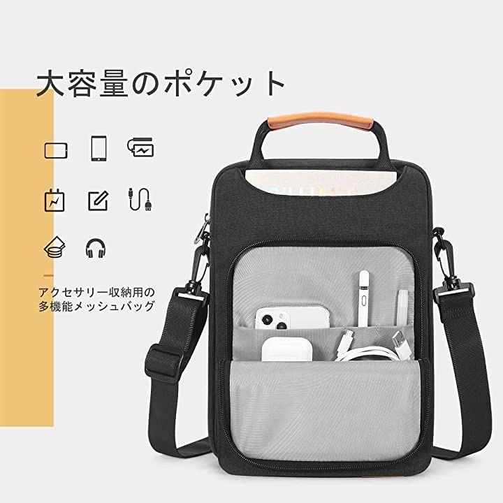 「多機能の用途」:このタブレットショルダーバッグは、取り外し可能で調節可能なショルダーストラップと快適なトップPUハンドルを備えており、メッセンジャーショルダーバッグ、クロスボディバッグ、ブリーフケースハドバッグとして好きなように使用でき、更に、その2つのハンドルは隠れ、側面ポケットに縮み、スリーブケースとしても使用できます。
