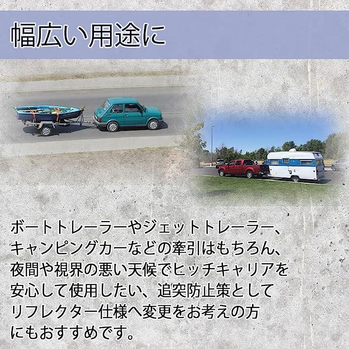幅広い用途に:ボートトレーラーやジェットトレーラー、キャンピングカーなどの牽引はもちろん、夜間や視界の悪い天候でヒッチキャリアを安心して使用したい、追突防止策としてリフレクター仕様へ変更をお考えの方にもおすすめです。