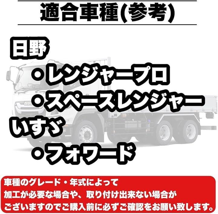 「適合車種(参考)」 ・日野 スペースレンジャー、レンジャープロ・いすゞ フォワード 等 *専用設計ですが車種のグレード・年式によっては、加工が必要な場合や、取り付け出来ない場合がございますのでご購入前に必ずご確認をお願い致します。