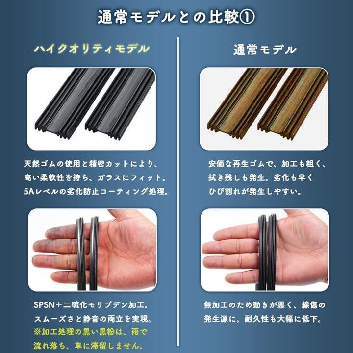 柔軟性のある素材を使用しているため、ワイパーの動きにしっかりと追従し、均一な拭き取りを実現します。