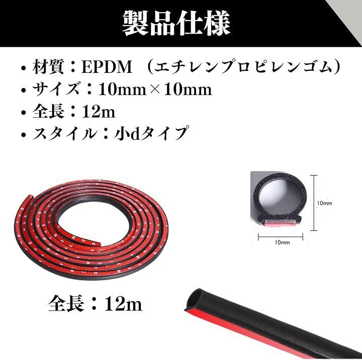 「製品仕様」*材質:EPDM (エチレンプロピレンゴム) *サイズ:10mmx10mm *全長:12m *スタイル:小dタイプ