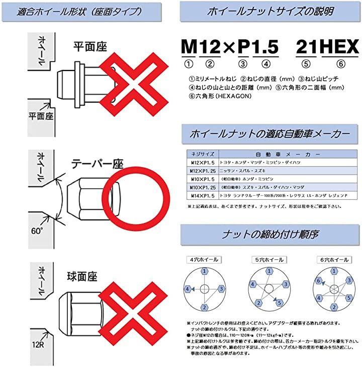 ・トヨタ、日産、三菱等の平面座ナットを必要とするホイールには使用できません。