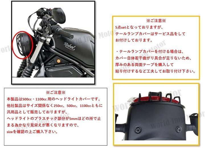 ホンダ レブル250/500/1100cc 様に適合する ヘッドライト/テールライト/ウインカー カバー 3点set 社外品です。
