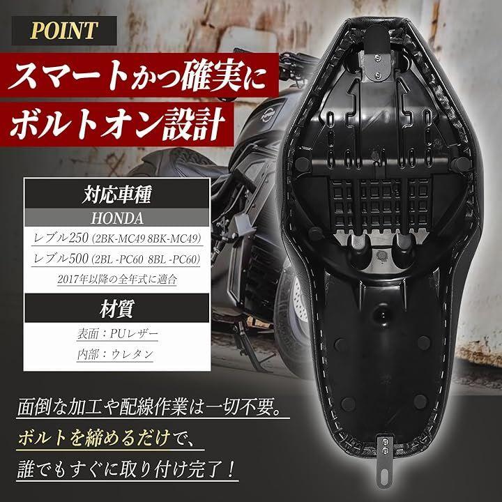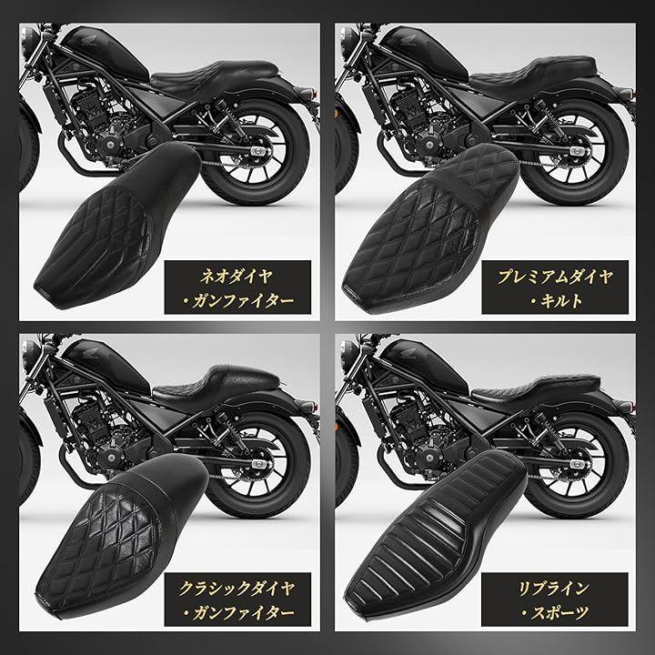 職人による精密カットで美しい縫い目を実現しプレミアムPUレザーが醸し出す上質な質感でバイクのスタイリングを一段上のレベルへ押し上げる大人のレブルにふさわしい逸品です。