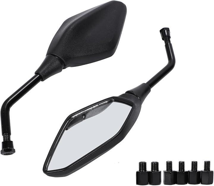 10MMアダプターx2(逆ネジ2個)、8MMアダプターx4(正ネジ2個、逆ネジ2個)がセットになっているので、どんなバイクにもお使い頂けます ・ミラーは360度調整可能で、車体の状況やライダーの好みに合わせて、自由に調整が出来る汎用性に優れたミラーです。
