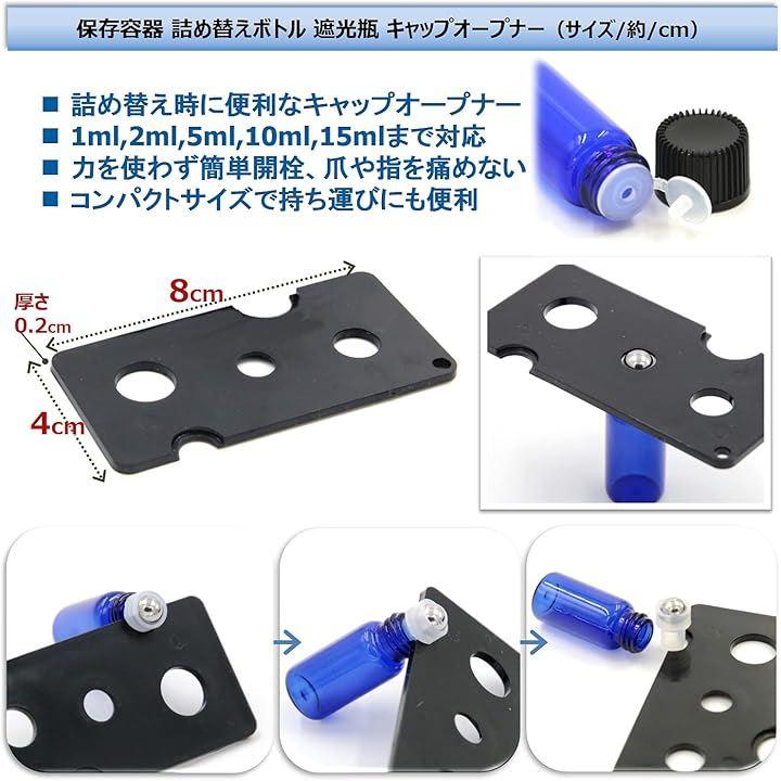 「サイズ/約/mm」1ml:25x14, 2ml:30x14, 3ml:35x14, 5ml:52x14「材質」 耐熱ガラス(ホウケイ酸ガラス)、AS樹脂、SI(シリコンゴム)「付属」ボトルオープナー