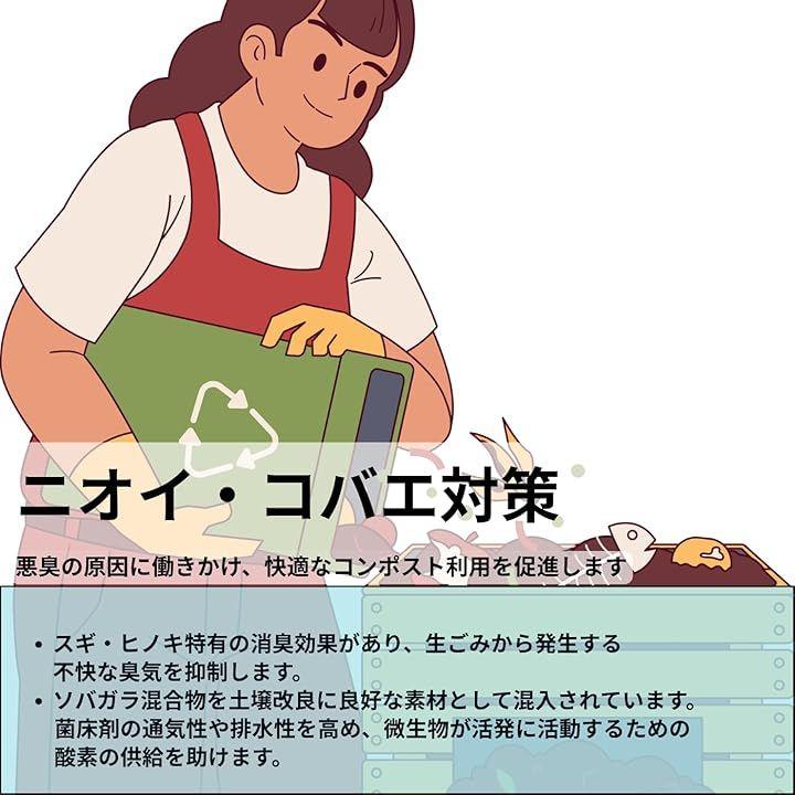 製品情報 内容量: 3000ml 素材: スギチップ、ヒノキチップ、ソバガラ(全て天然素材100%) 対応: コンポストBOX(別売)と合わせてご使用ください。