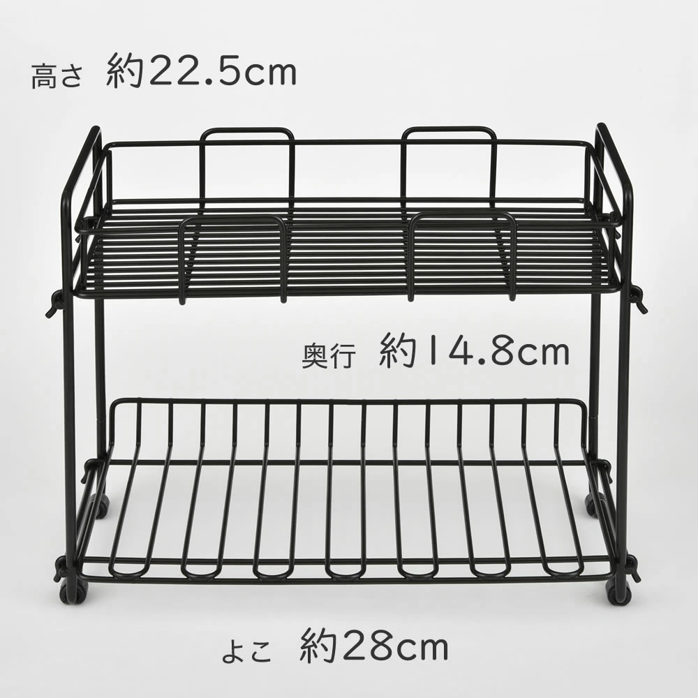 キッチンのちょっと空いたスペースによく使う調味料をまとめて収納。2段式で上段にはビンに入った調味料を、下段には高さ14cmまでの調味料ケースなどを置けて便利。