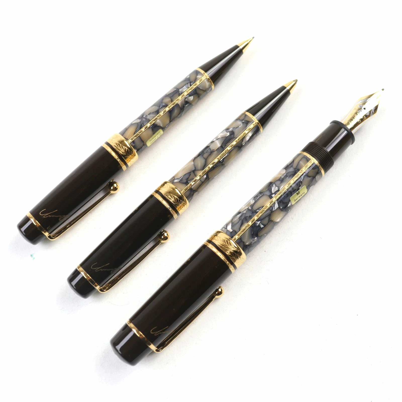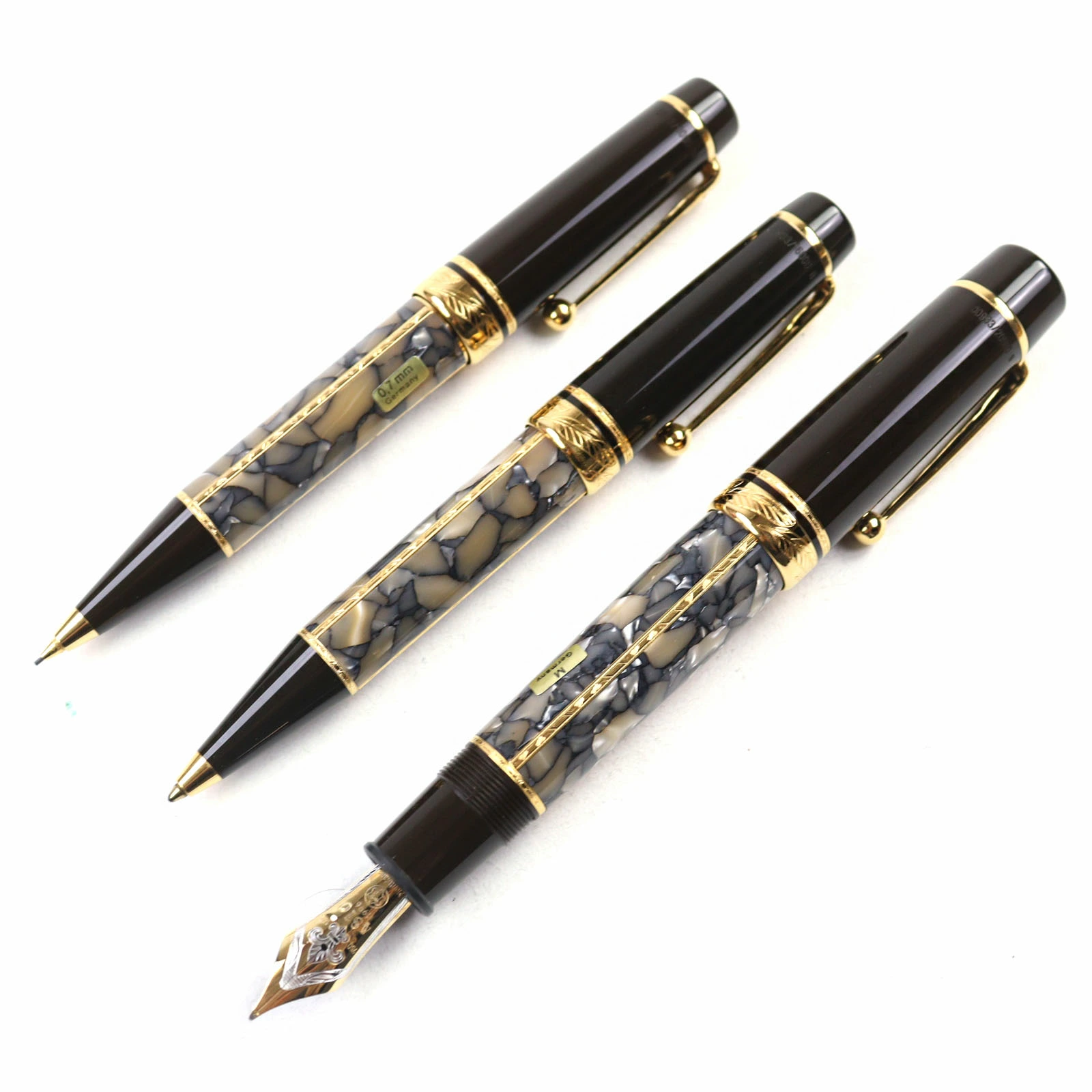 | サイズ (size) | 【仕様】【実寸】万年筆/全長:約13.5cm グリップ幅:約1.5cm ボールペン/全長:約13.2cm グリップ幅:約1.3cm シャープペンシル/全長:約13.5cm グリップ幅:約1.29cm 【仕様】万年筆:Mニブ | ||||||||||||||||