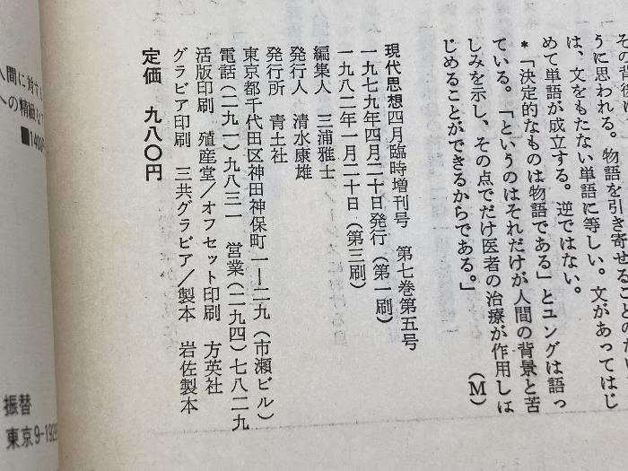 商品名:現代思想 1979 4月臨時増刊 総特集 ユング 青土社 ユング