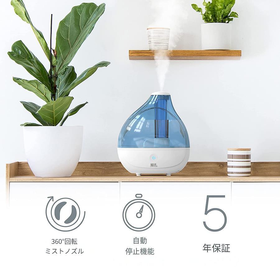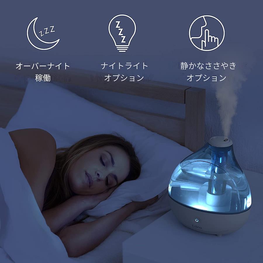 3営業日以内に発送≪新品未開封品≫:【 超音波 冷却ミスト技術 】 心地よい呼吸で 十分な睡眠を得ることができるように 最大16時間の スチーム 連続運転で空気の潤いを確保します; 速度の設定 霧の方向調節も簡単にできる 卓上加湿器【 1.5 リットルの水タンク 】 寝室 オフィス 他約12畳のお部屋をカバーします【 ナイトライト 】 ホッとリラックスできるナイトライト【 自動停止 】 水不足時 水槽が取り外された時に 空焚き防止 機能で 自動停止します【 梱包内容 】 加湿器本体; AC 電源アダプター; ディスククリーニングブラシ; 取扱説明書