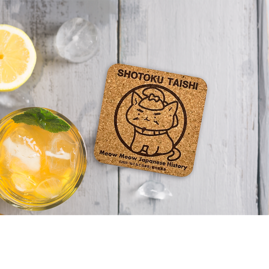 かわいい「ねこねこ日本史」のキャラクターが表面に印刷されたコースターです。