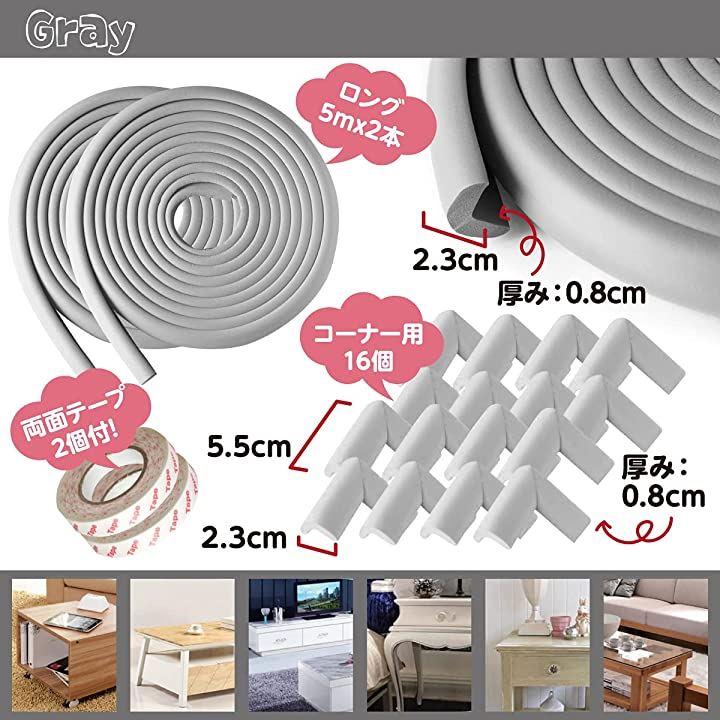 コーナークッション:5mx2.3cmx0.8cm,コーナーガード:5.5cmx2.3cmx0.8cm、邪魔にならずクッション性のある最適サイズになっています。