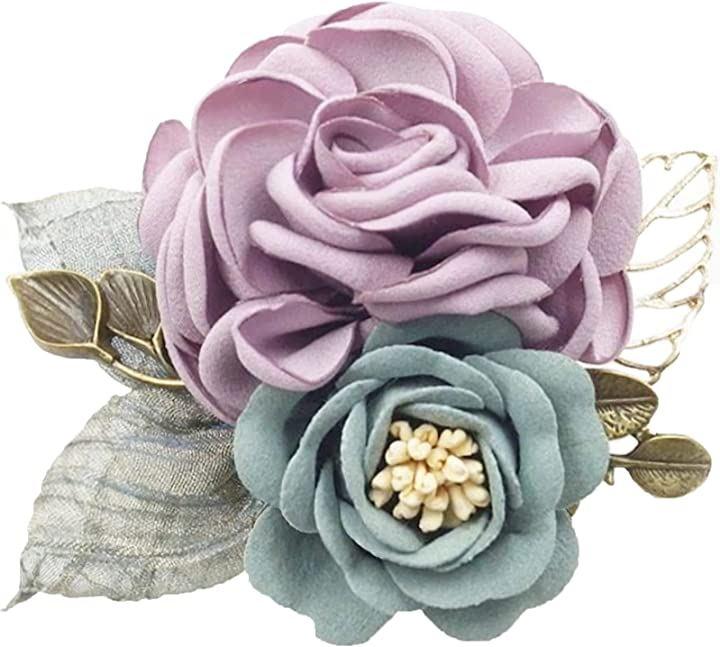 ・「特徴」最近流行りのくすみカラー、ニュアンスカラーを使ったお花のコサージュ。
