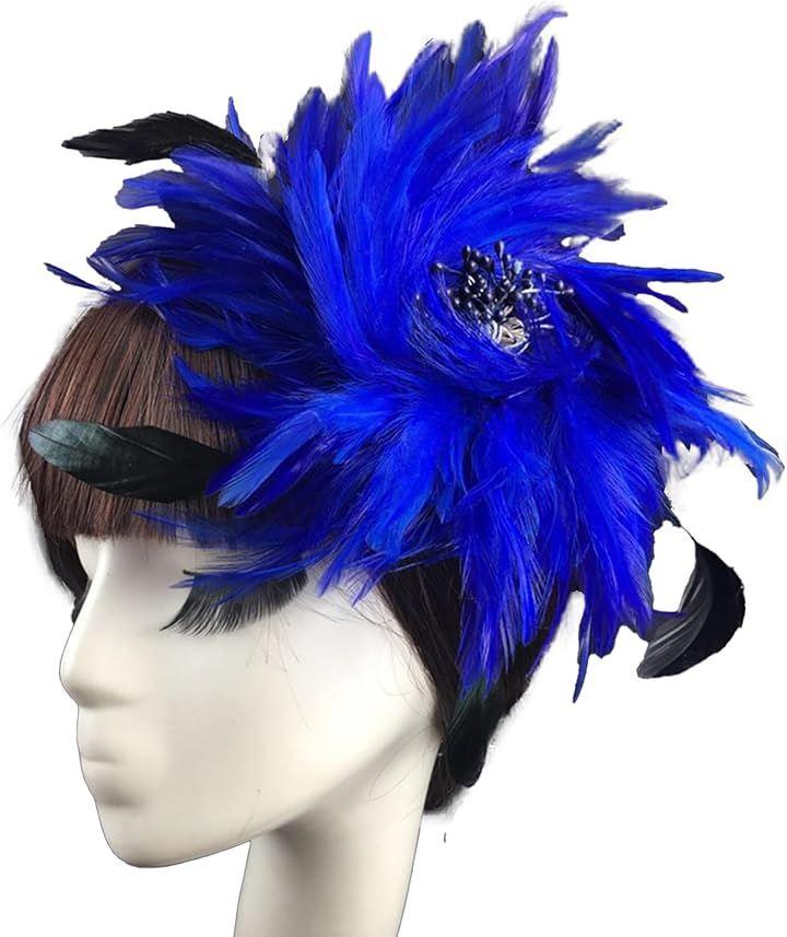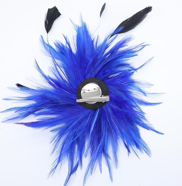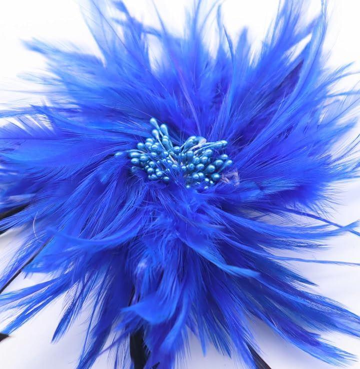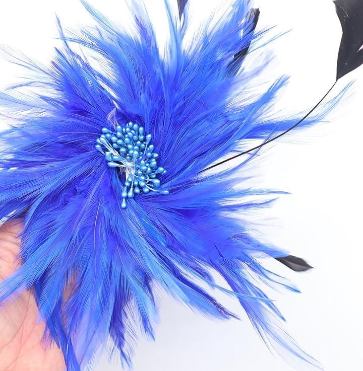 1. 「華やかなデザイン」 鮮やかな赤色のフェザーが目を引くこのヘッドドレスは、中心に輝くビーズとスパンコールで装飾された花のモチーフが特徴です。