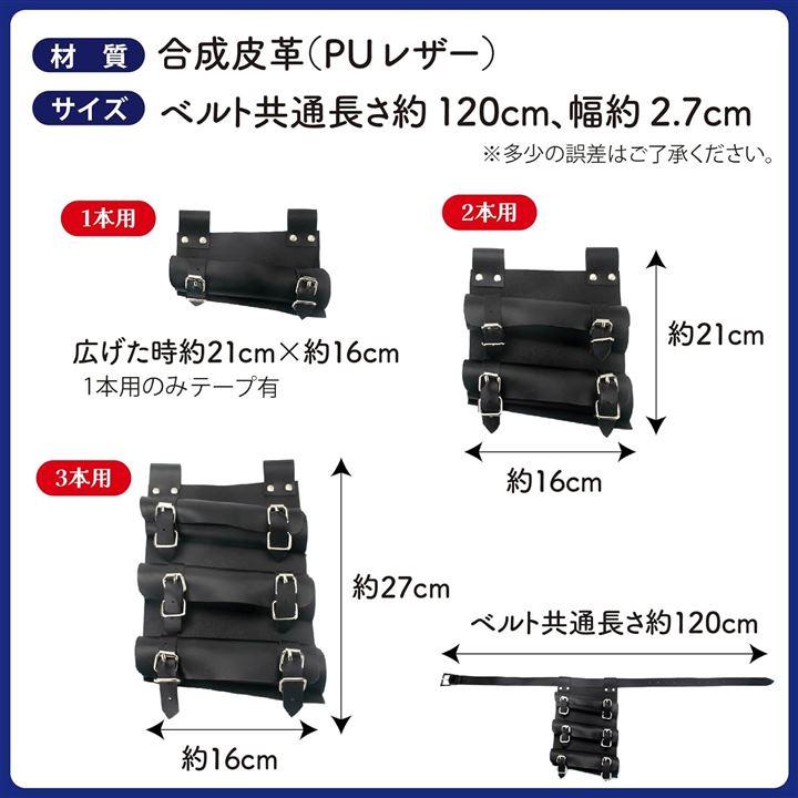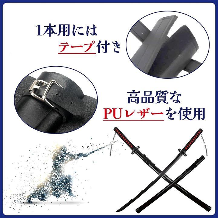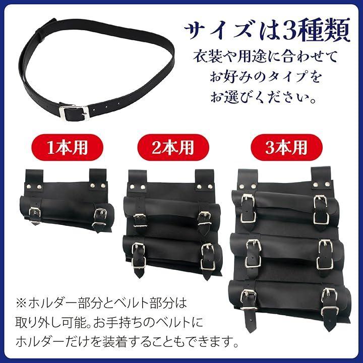 刀や剣はベルトでしっかりと固定する仕様で、1本用タイプにはテープも付いています。