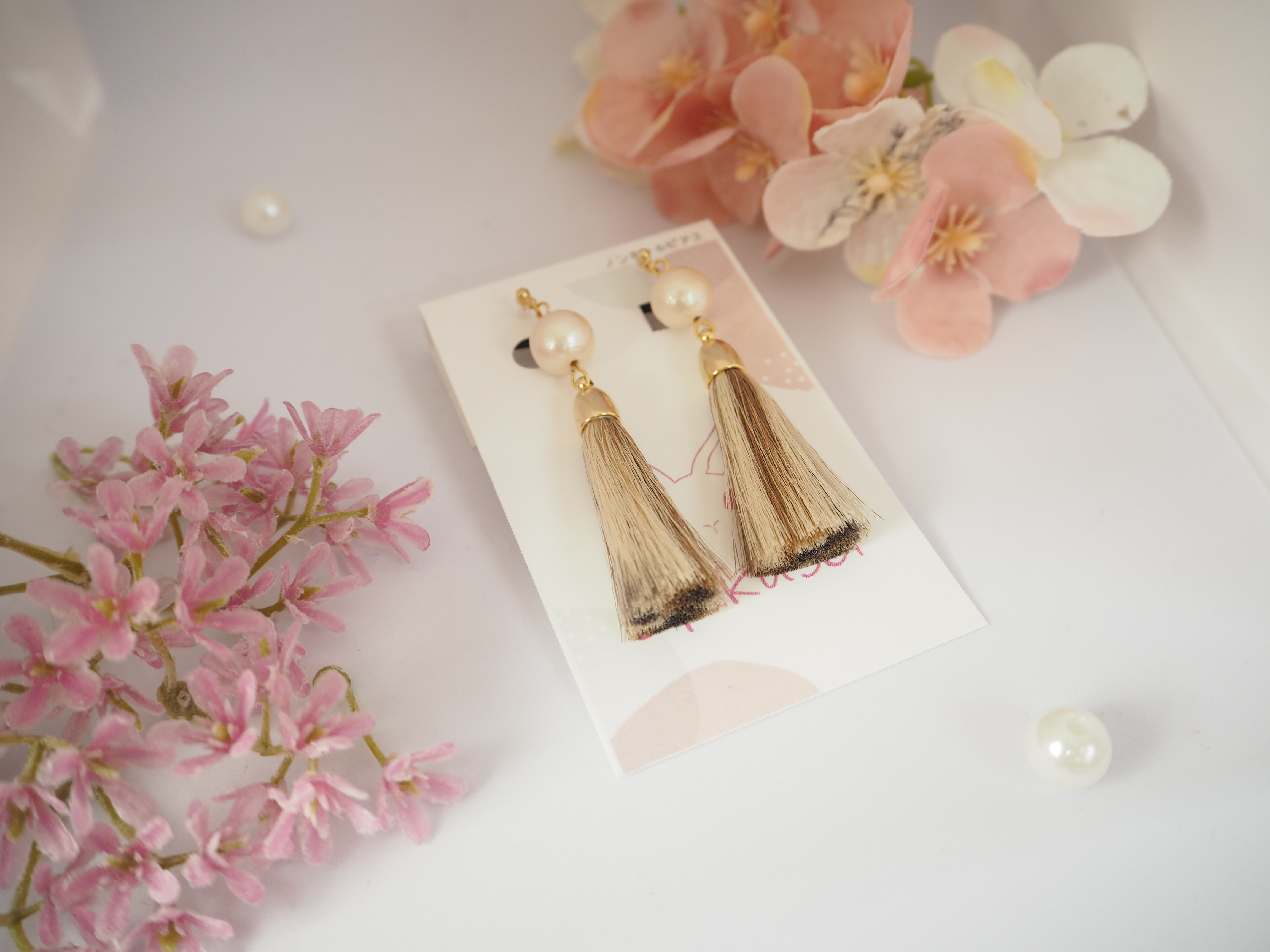 多少写真の色味、パッケージは異なる場合がございます。樹脂ノンホールピアスパーツは、金属アレルギーに対応しております。タッセルは大変繊細ですので、使用後は形を整えアクセサリースタンド等に掛けて収納してください。