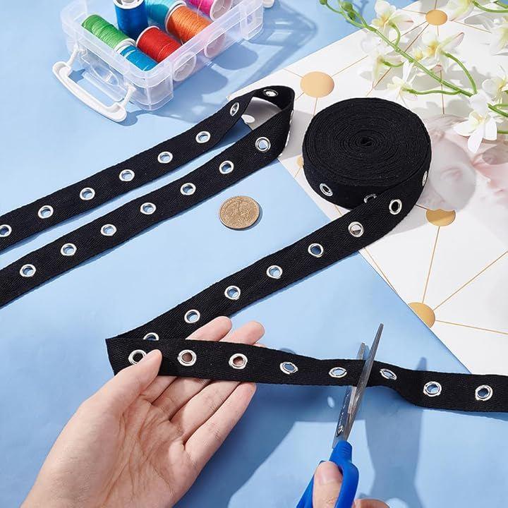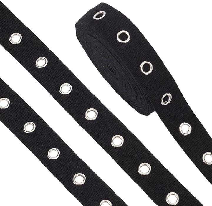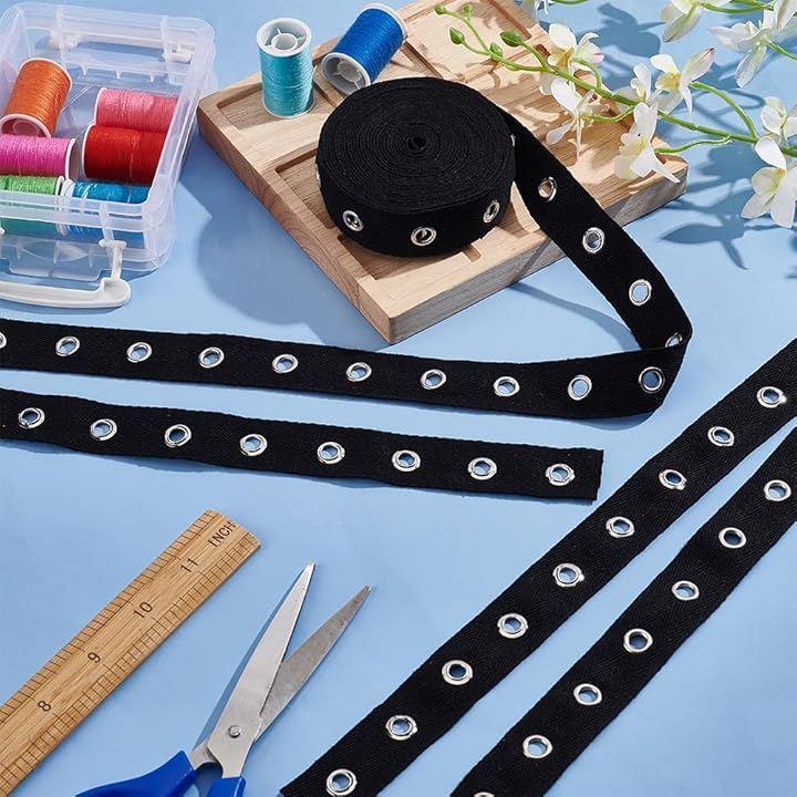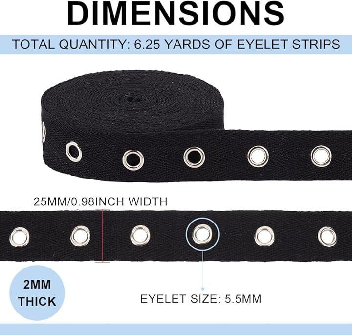 高品質素材:アイレットコットンリボンは高品質の黒い綿リボンとシルバー合金のアイレットとリベットでできており、洗濯と乾燥が可能で、変形しにくく、丈夫で耐久性があり、長期間使用できます。