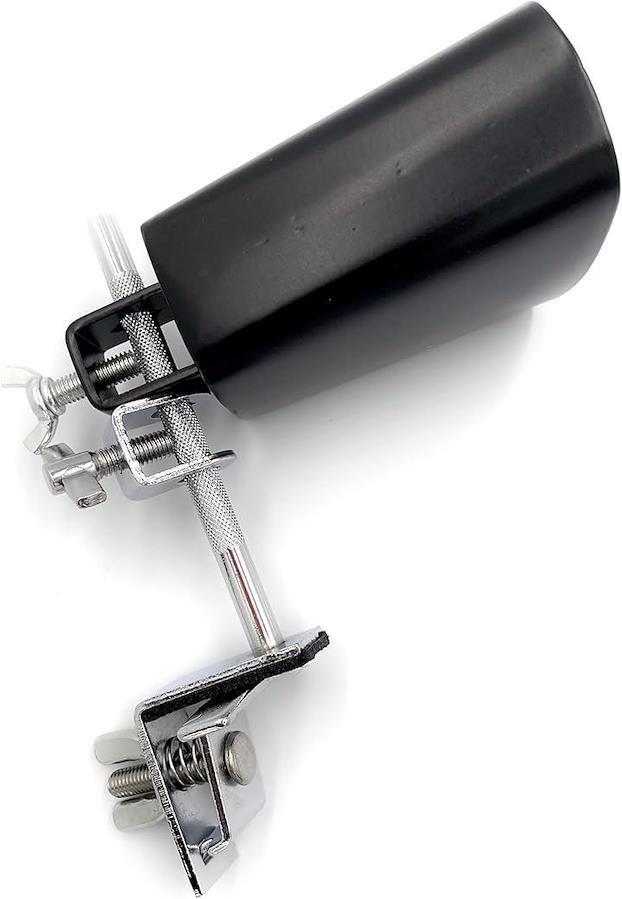 ビジュアルと音圧を両立したセットアップ」 重厚な金属光沢を放つカウベルと、しっかり支えるホルダーのコンビが、ステージ上の機材としてもひときわ目を引く存在に。