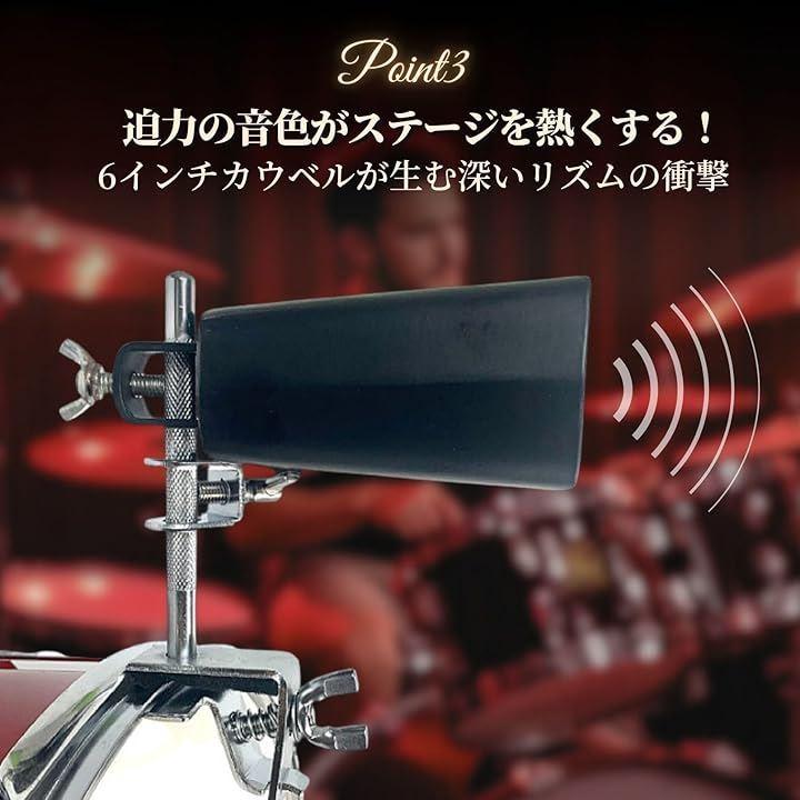 存在感のあるサウンドは、観客の注目を一手に集め、リズムの中核を堂々と担うカウベルとして機能。
