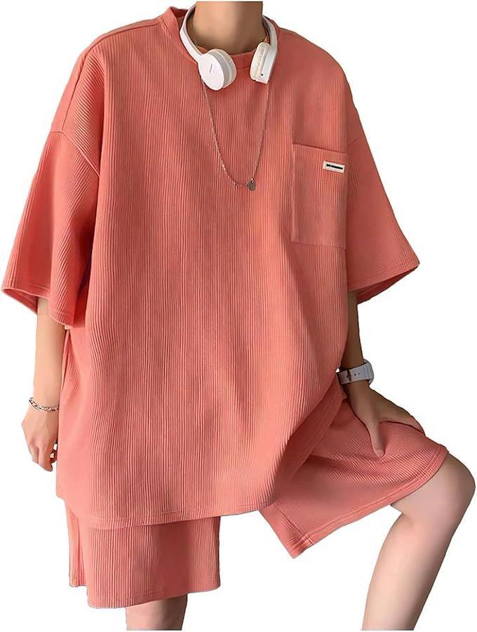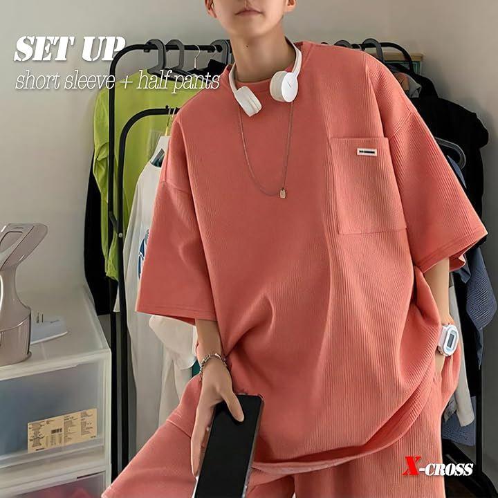 素材 ポリエステル 軽やかな素材で軽快にに動けるクルーネックシャツとハーフパンツのセットアップ。