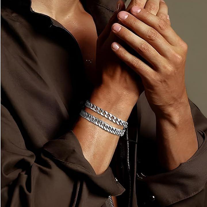 「重厚感x洗練デザイン」 こちらの喜平ブレスレット メンズモデルは、トレンド感と定番の良さを兼ね備えたサージカルステンレス製の高級チェーンブレスレットです。