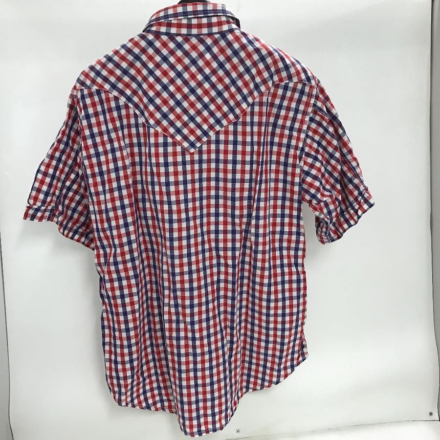 【管理番号】02w03858【型番】25622【対象】メンズ【カラー】ホワイト x ブルー x レッド【モデル】チェック柄 ウエスタン半袖シャツ【サイズ】ケース:約mm肩幅:約43cm着丈:約67cm身幅:約49cm袖丈:約23.5cm【素材】13791【付属品】なし■コンディション・状態【状態ランク】B目立つ汚れは見受けられませんが、シワがあります。