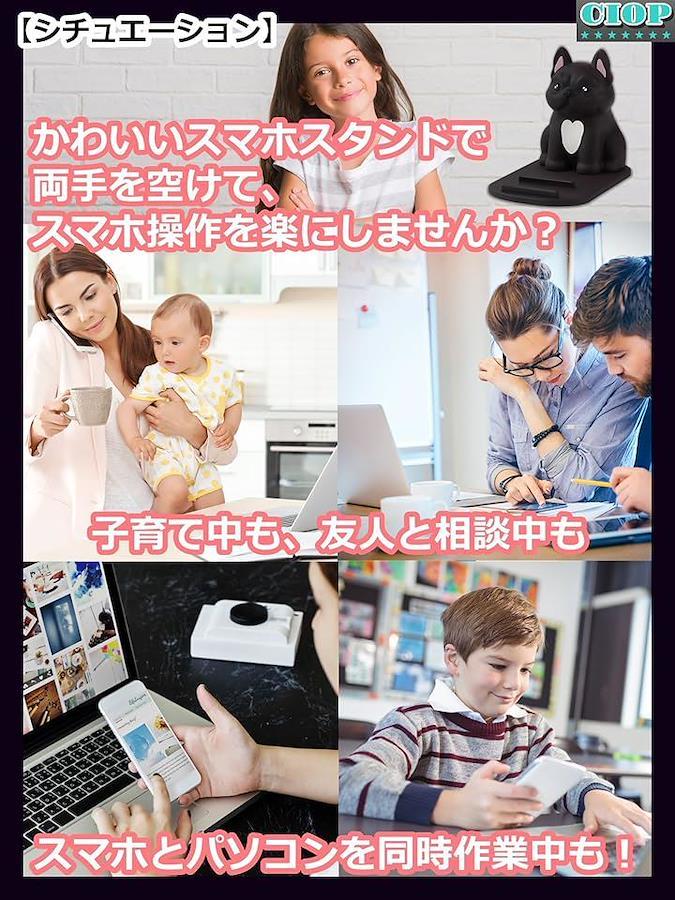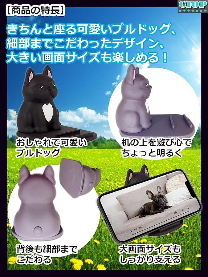 「ユニークなデザイン」:優しくコミカルで かわいい きちんと座る ブルドッグ があなたのスマホをやさしく支え見守ってくれます。