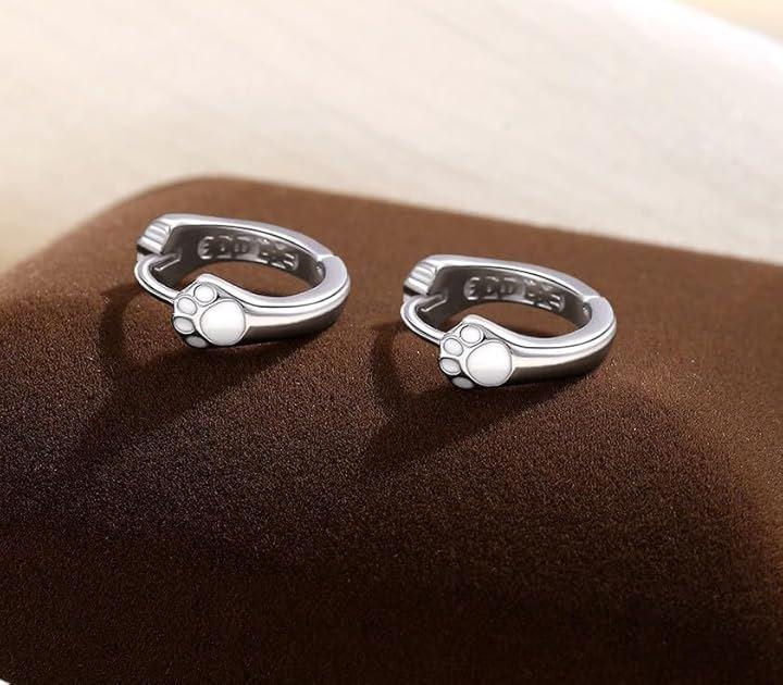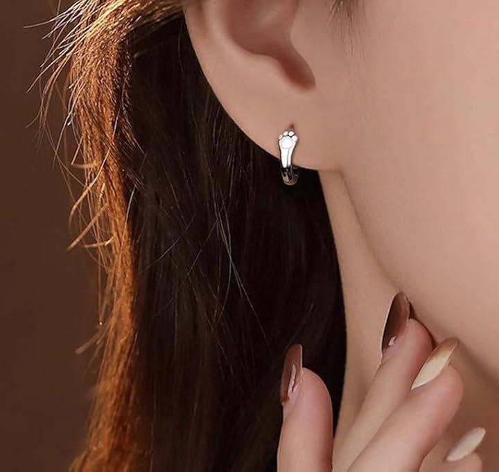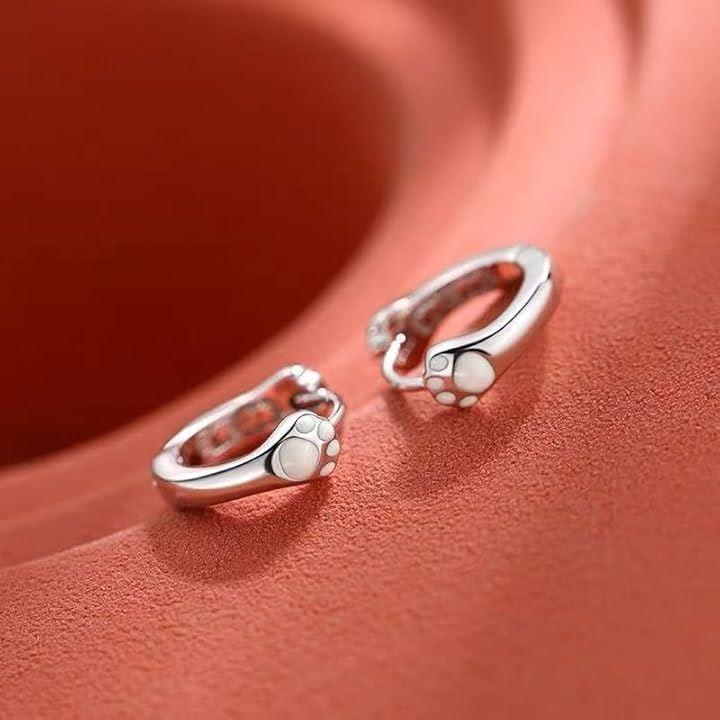 「デザイン」愛くるしい肉球モチーフがデザインされたシルバーカラーのリングピアス。