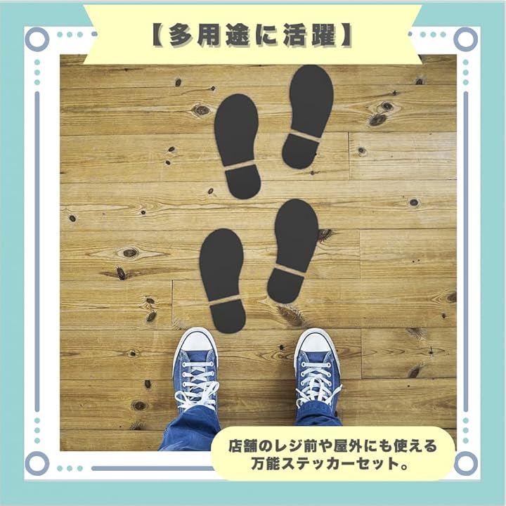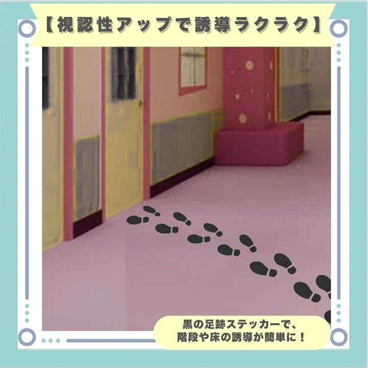 「視認性アップで誘導ラクラク」黒の足跡ステッカーで、階段や床の誘導が簡単に。