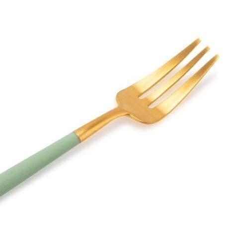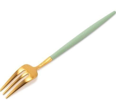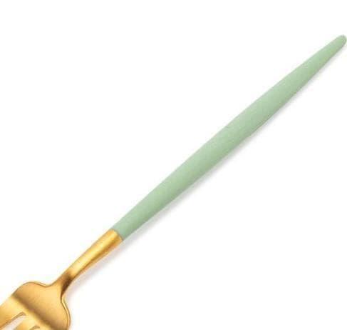 爽やかなセラドン(淡いグリーン)のハンドルに、ゴールドの金属部分が映えるデザインで、テーブルを華やかに彩ります。