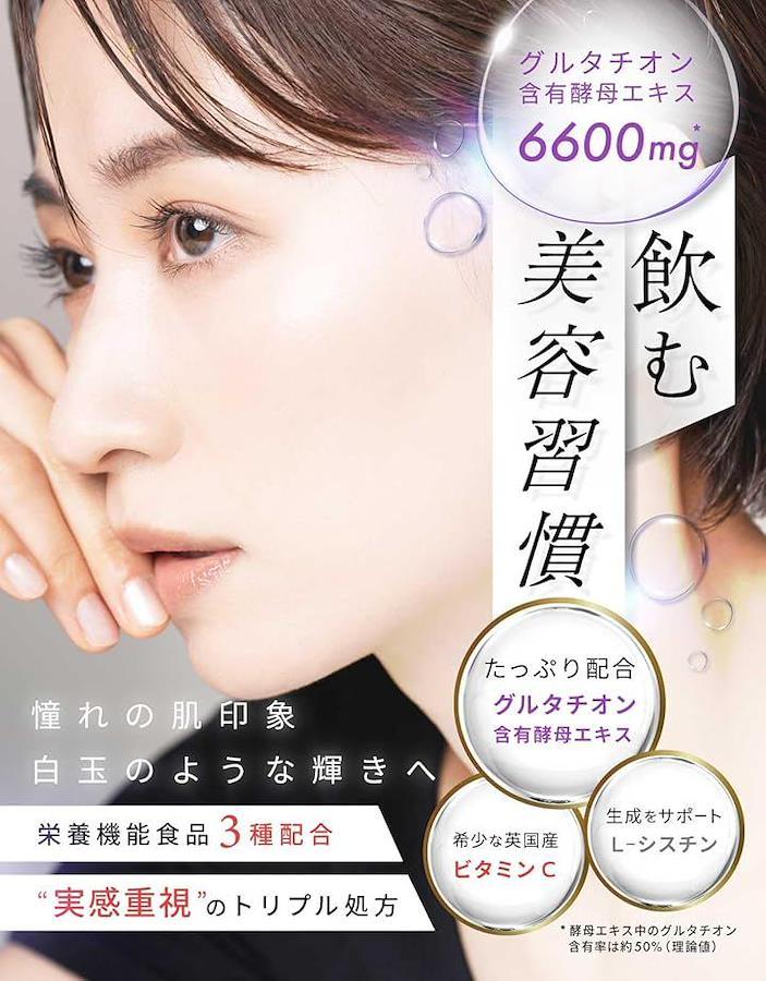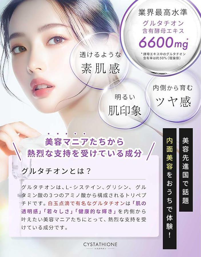 「トリプル美容処方」 シスタチオンは、ワンランク上の白玉美容を目指して、グルタチオン含有酵母エキス、C-シスチン、ビタミンCを黄金比率で配合した日本製サプリメントです。