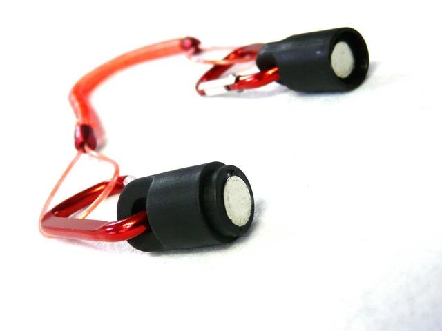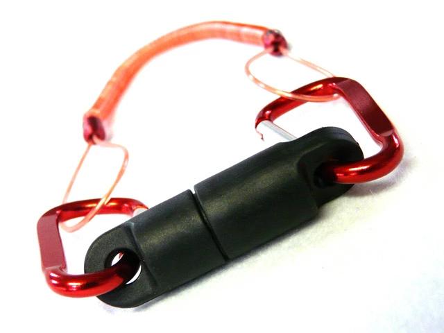 脱着自在のカラビナでバッグやベルトループ、ライフベスト等に装着可能です。マグネットバックルを折るようにすると簡単に外すことができます。