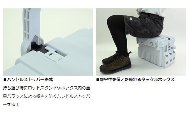 ハンドルストッパー搭載!持ち運び時にバランスが崩れず持ち運びラクラク。タックルボックスとしての収納性はもちろん、堅牢性を備えた座れるタックルボックス。使い勝手のよい両開きタイプのフタで、開けた時フタが90度で止まる。プライヤーなどの小物をチョイ置き出来るインナートレー内蔵。本体サイドにはロッドスタンドTBなどに対応した多目的ホルダーを装備しスタイルの合わせて機能を拡張可能。滑り止めシール付き。 本体外寸:約37.5×29.3×27.5cm 自重:約2.2kg 素材:耐衝撃性ポリプロピレン ※実物と色が違って見える場合があります。あらかじめご了承下さい。