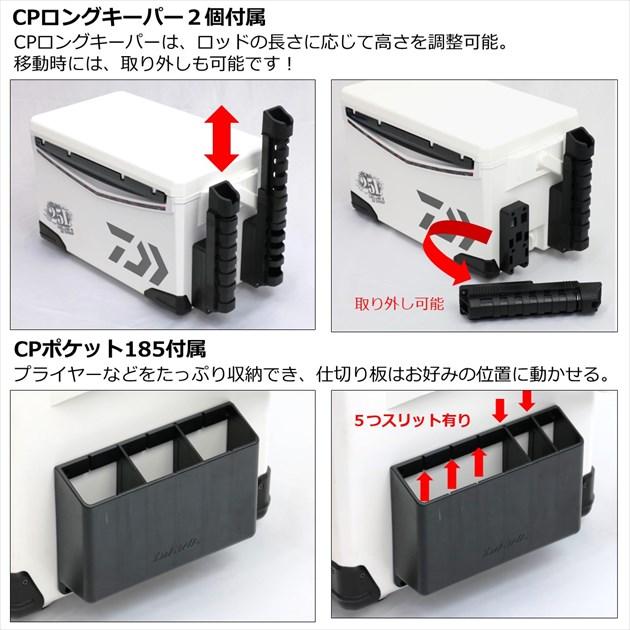 タイラバ、ジギング、ハードロックなどゲームフィッシングにピッタリ。ソルトルアー専用クーラーが登場。容量25●、中型の青物やマダイ、ロックフィッシュに最適なサイズ。うれしいラインナップ、高保冷の1面真空仕様と軽量スチロール仕様。グリップの長い竿もしっかり保持できるCPキーパーロングを2個付属。プライヤーやフィッシュグリップなどをたっぷり収納できるCPポケット185付属。船の上などでも滑りにくいふんばるマンを標準装備。90度回すだけで簡単に開閉可能な水栓付き。 容量:25L 自重:4.3kg 内寸:22×43×22.5cm 外寸:31×58×34cm ※実物と色が違って見える場合があります。あらかじめご了承下さい。 ●この商品は、別倉庫から佐川急便で発送致します、運送会社のご指定はできません。