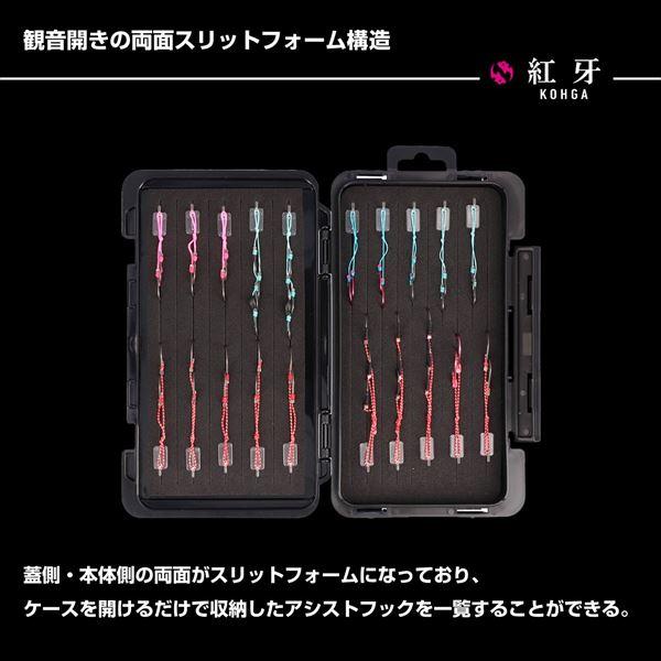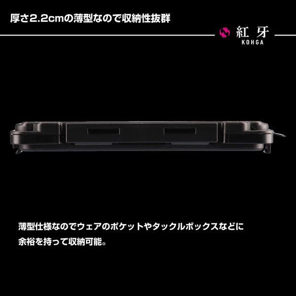 アシストフックを並べてすっきり収納できる薄型の両面収納ケース。タイラバのアシストフックを並べてすっきり収納できる専用ケース。観音開きの両面スリットフォーム構造。アシストフックを掛け止めて収納するのに特化した専用パーツ36個付属。ポケットやタックルボックスに余裕を持って入る薄型仕様 外寸:約17.5×10.5×2.2cm カラー:ブラック ※実物と色が違って見える場合があります。あらかじめご了承下さい。