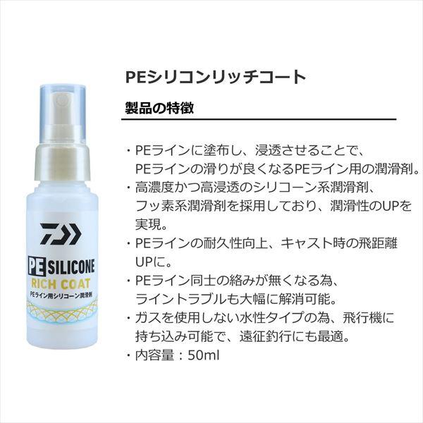 PEライン用 シリコーン潤滑スプレー。PEラインに塗布し、浸透させることで、PEラインの滑りが良くなるPEライン用の潤滑剤。高濃度に配合されたシリコーン系・フッ素系潤滑剤は浸透性にも優れ潤滑性の更なるUPを実現。PEラインとガイドの摩擦減少による耐久性向上・キャスト時の飛距離UPに。PEライン同士の摩擦も減少する事によりライントラブルも大幅に解消可能。■PEシリコンリッチコートG100・・・ガススプレータイプで狙ったところにピンポイントに噴射可能。速乾性に優れ、釣行の直前でも使用可能。 内容量:100ml ※実物と色が違って見える場合があります。あらかじめご了承下さい。