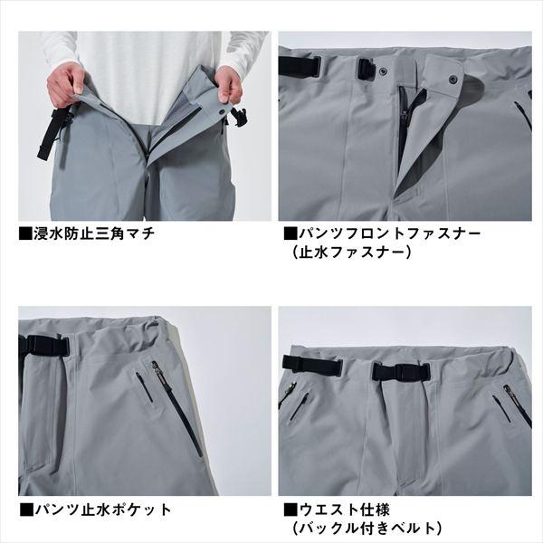 磯ルアー向け!ハードな環境に耐えうるレインパンツ。表地は磯場での使用を想定した生地厚のGORE-TEX Productsの3層素材を採用。環境負荷の少ないフッ素フリー撥水剤を使用したモデル。なかでも強度が必要なヒップ、膝、裾は耐久性の高い150デニールのGORE-TEX PROファブリクスの厚手生地を使用。レインパンツとゲームべストを接続できるパンツコンビアップシステムにより股ベルトの接続が容易になり、突っ張らずに足を動かしやすい。ウエスト部はバックル付きベルトを採用し、ずり落ちにくく、調整しやすい仕様。 サイズ:2XL カラー:グレー ※実物と色が違って見える場合があります。あらかじめご了承下さい。
