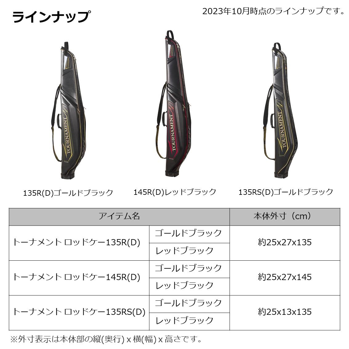 ダイワ磯ロッドケースの最高峰! Rタイプ:必要な小物まで大容量に収納できる新形状ロッドケース本体部外寸(cm):約25×27×145自重(kg):3.1