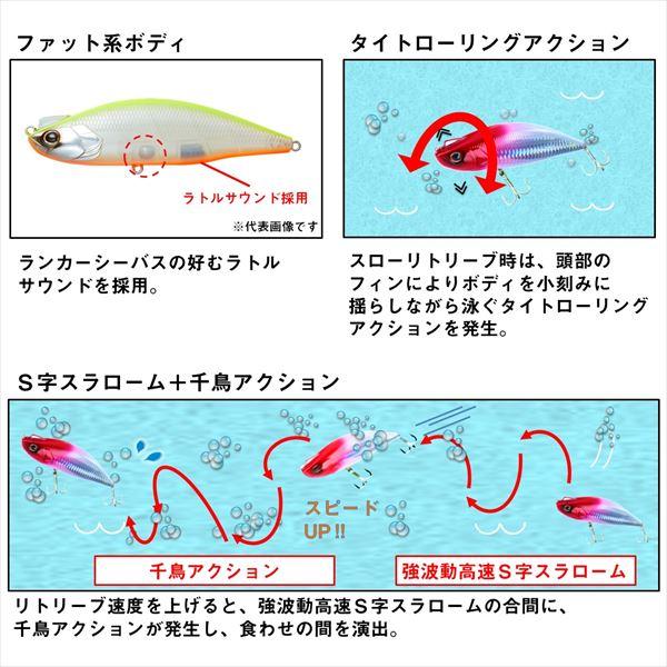 ダイワシンペンの代名詞「Lazy」シリーズ。タイトローリング&ワイドS字スラローム2WAYアクションのぶっ飛びファットシャッドシンペン。■タイトローリング&ワイドS字スラローム2WAYアクション ■スローリトリーブでは頭部フィンによりタイトローリング ■ノーマルではワイドS字スラロームアクションにシフトUP ■ランカーシーバスの好むラトルサウンド。シーバスの活性が低いときや捕食レンジが深いときは、スロー~ノーマルリトリーブのコンビネーションで中~低層を攻めることにより、シフトチェンジのタイミングで都度アクション変化による食わせの間が発生、食い渋りのシーバスも思わず口を使う!シーバスが水面を意識してボイルしているが、表層引き波系を引いても反応しないときは、ロッドを立てながら高速リトリーブで表層を引くと、高速S字スラロームによる強波動と時折入る千鳥アクションによりバイトを誘発可能!もちろんただ巻きでも、ランカーシーバスの好むワイドS字スラロームアクションでターゲットを魅了する。 サイズ:70mm 標準自重:22.8g 最大潜行深度:0.2~約1.0m タイプ:シンキング 標準装備フック:#6トレブル 標準装備リング:#3 アクション:タイトローリング&スラローム2WAYアクション ※実物と色が違って見える場合があります。あらかじめご了承下さい。
