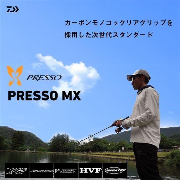 カーボンモノコックリアグリップを採用!和田浩輝完全監修!クラスを超越した次世代スタンダードロッド。PRESSOの中核を担う、ハイパフォーマンスロッドPRESSO MXが登場。現代のエリアトラウトフィッシングを網羅するラインアップと、クラスを超えたスペックを有する。初採用のカーボンモノコックリアグリップは、感度の向上と扱いやすさを併せ持つ。 全長:1.83m 重量(g):63 継数:2 仕舞寸法(cm):94 ルアーウェイト:0.4-3g 適合ライン(ナイロン):1.5-3lb 適合ライン(PE):0.15-0.3号 先径/元径(mm):1.3/6.4 カーボン含有率(%):97 ※実物と色が違って見える場合があります。あらかじめご了承下さい。