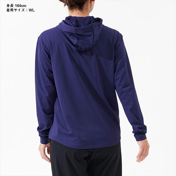 太陽光から肌を守り、心地よいドライ感が続く。春夏シーズンに最適なUVケア、吸水速乾機能付き。本体素材の肌面側凸部分に撥水糸を使用することで吸水機能はそのままに、汗によるべたつきを抑制し、快適な着心地を継続する。ポリエステル100%で軽量ながらストレッチ性があり、動きの多い釣りでも快適に着用できる。フード先にはスピンドルアジャスターを搭載。強風時のフードのバタつきを軽減する。袖丈は若干長めに設定し、袖口にはフィンガーホールを設け、手首周りに生じがちな隙間の日焼けを予防。 サイズ:L カラー:グレープネイビー ※実物と色が違って見える場合があります。あらかじめご了承下さい。