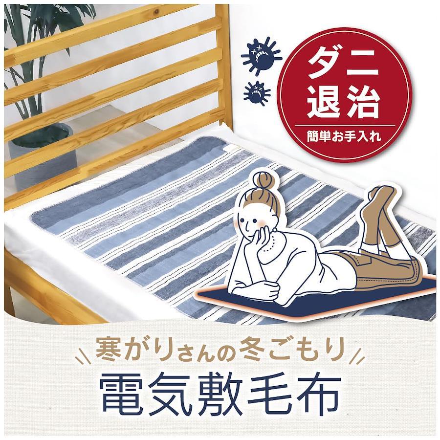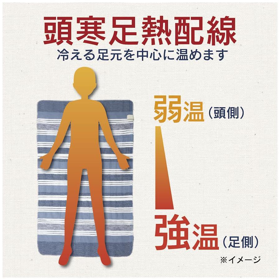 3営業日以内に発送≪新品未開封品≫:スタンダードで省エネな電気敷毛布●縦130×横80cm●ポリエステル100%●定格消費電力40W●表面温度:強52℃/中36℃/弱20℃●本体丸洗い可能●頭寒足熱配線●ネイビー/ボーダー柄