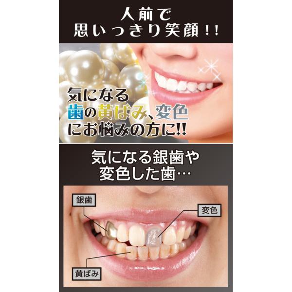 歯の黄ばみ、変色、銀歯、サッとひと塗りで憧れの白い歯に。従来品の歯のマネキュアは色が白すぎてかえって不自然に。デンタルパールはピュアホワイト&ナチュラルホワイトの2色展開。より自然な白さに演出できます。