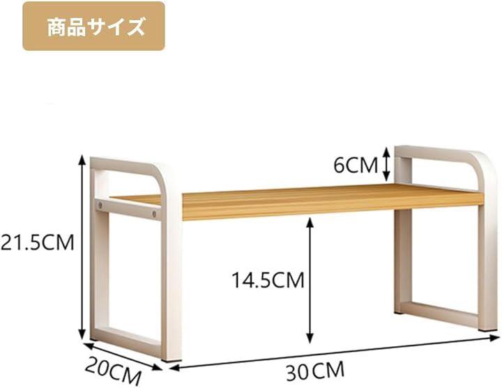 「負荷能力」デスクシェルフのサイズは幅30x奥行20x高さ21.5m、材料は鋼材とパーティクルボードです。